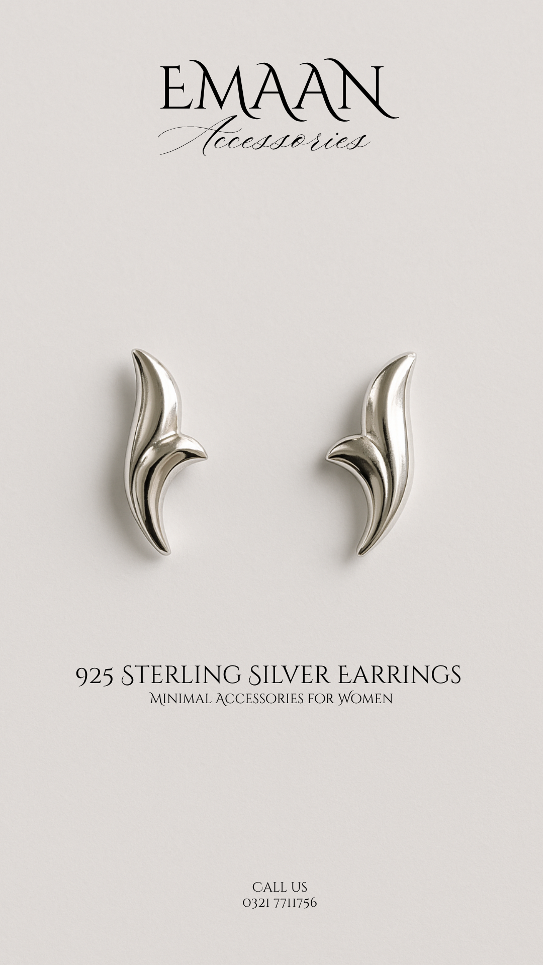 The Waveform Sterling Silver Studs draw inspiration from the natural motion of ocean waves, translated into an elegant, curved silhouette. Hand-polished to a smooth satin shine, they rest gracefully on the earlobe — subtle yet statement-worthy.